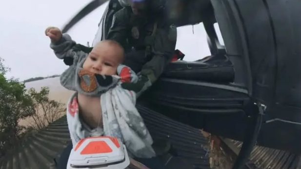 ➡️ Bebê é resgatado pelo telhado de casa durante enchente no RS