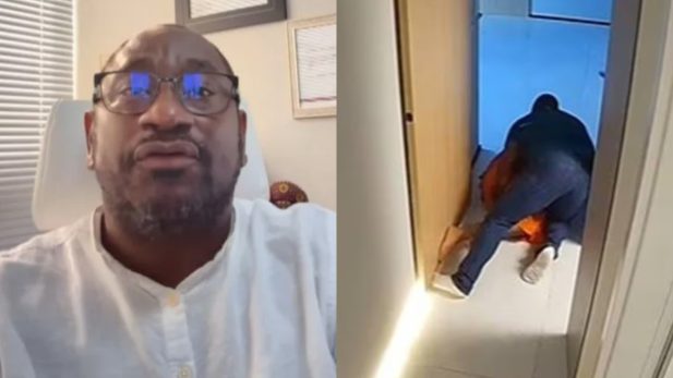 Ele declarou que, mesmo após mandar a mulher sair da residência, percebeu que ela “ainda se encontrava no quarto, deitada na cama com ar condicionado ligado“, e afirmou que pegou a denunciante “pela barriga para levá-la para fora“. No entanto, segundo ele, o piso é liso e ambos acabaram escorregando.