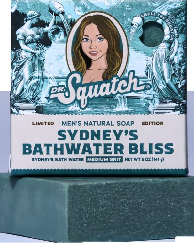 Batizado de Bathwater Bliss, o sabonete contém areia esfoliante, extrato de casca de pinheiro e um toque do mesmo sabonete usado por Sweeney no famoso banho. Na campanha, a marca promete um produto que “canaliza dois dos melhores lugares da Terra: a natureza e a banheira de Sydney Sweeney”.