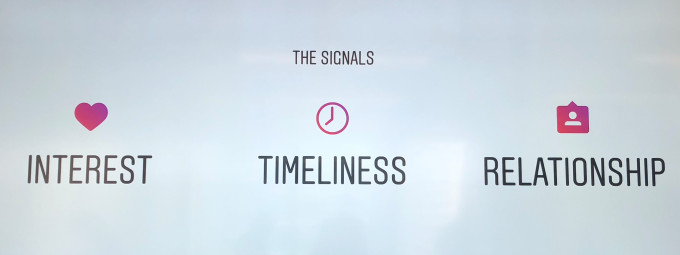 Na última semana, a empresa reuniu um grupo de repórteres em seu novo escritório em São Francisco, Califórnia, e divulgou os elementos que pesam na hora de montar o feed. O chefe de produto do Instagram, Julian Gutman, explicou ao TechCrunch que o aplicativo classifica três fatores principais ao criar os feeds dos usuários: interesse, atualidade e relacionamento.