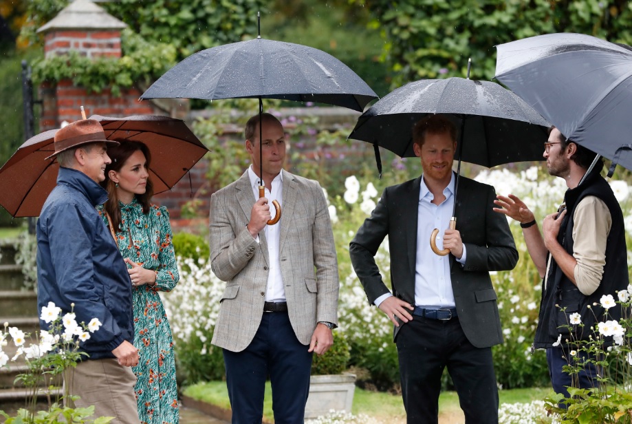 Harry, William e Kate visitando o jardim de Diana (Foto: Getty)