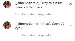 Já alguns, aproveitaram para elogiar o gesto romântico de Joe: “Ok, essa é a coisa mais doce, se for o olho de Sophie!!”, escreveu uma seguidora, enquanto que outra disse: “Seja fã da sua mina igual o Joe é fã da Sophie”.