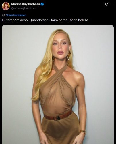 A situação começou quando uma internauta publicou uma opinião controversa sobre a estrela. “Me desculpem, mas acho a Marina Ruy Barbosa muito feia. Se ela não fosse ruiva, ninguém ia ligar”, escreveu ela.