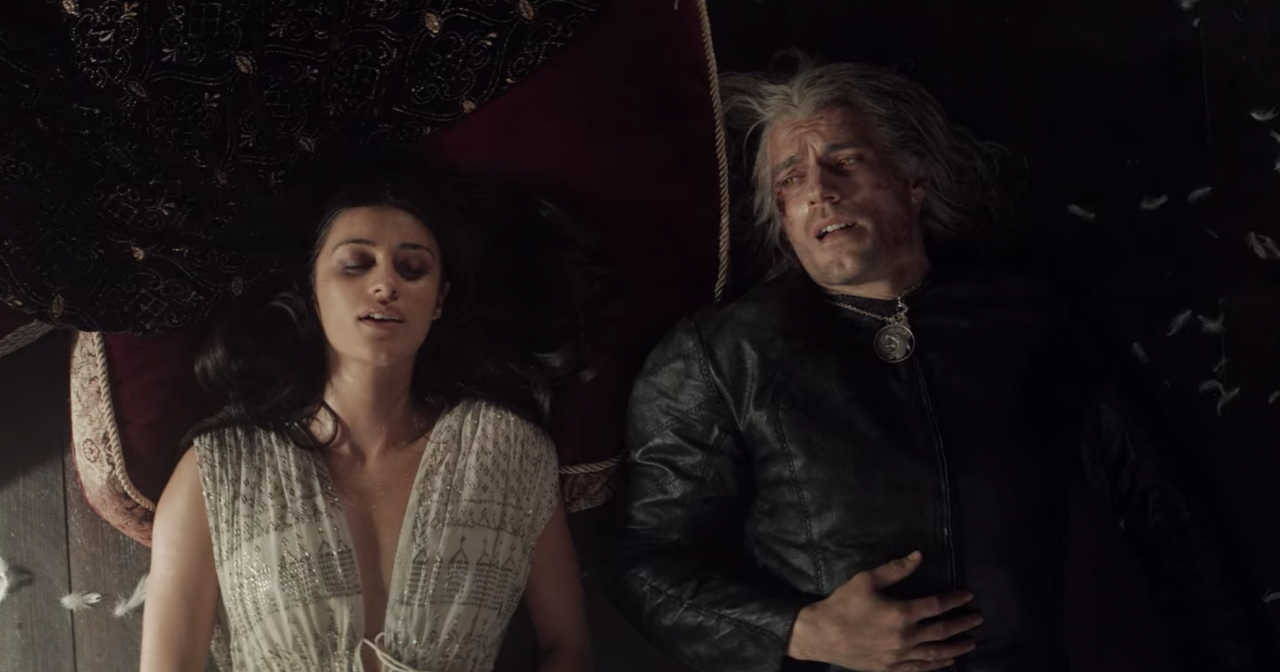 Em entrevista ao site ComicBook, a showrunner da série, Lauren Hissrich, revelou por que decidiu seguir a rota do humor em um momento tão importante para os personagens. Na cena, os dois acabam de enfrentar uma intensa batalha em que quase perderam suas vidas. No entanto, após trocarem olhares e algumas palavras, eles se entregam ao clima, ao som de uma trilha sonora leve e engraçadinha. O bardo Jaskier, que pensava que os dois estavam mortos, fica surpreso ao flagrá-los pela janela: “Estão bem vivos!”.